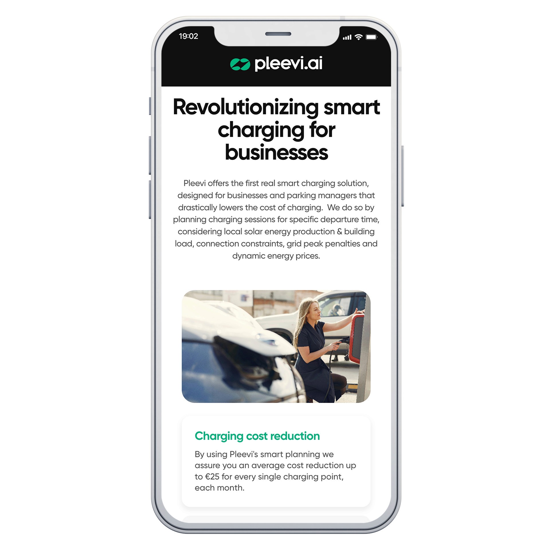 Pleevi offers the first real smart charging solution, designed for businesses and parking managers that drastically lowers the cost of charging. They do so by planning charging sessions for specific departure time, considering local solar energy production & building load, connection constraints, grid peak penalties and dynamic energy prices. To put their name on the map, we've launched a brand new landingpage website. Go check it out! => https://Pleevi.ai