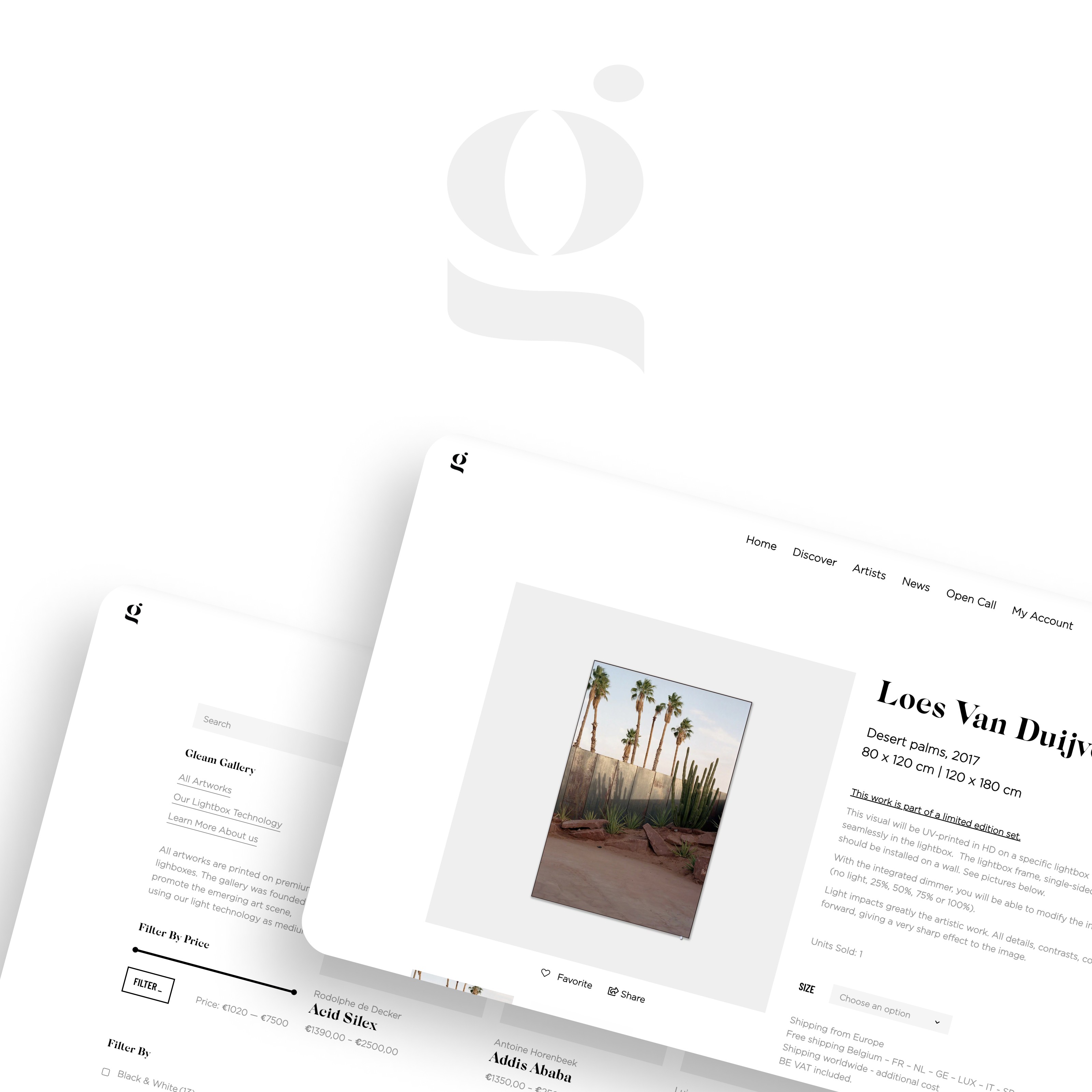 Less a gallery than a hybrid project space, Gleam Gallery is an online platform founded to promote the emerging art scene. They produce lightboxes that serve as a frame for artworks, illuminating each piece by specific levels of colour and brightness. With this new technology, Gleam Gallery rises as a new platform that connects emerging artists, galleries, private sectors and the public. When Gleam Gallery wanted to launch they needed a logo, branding and social media that aligned with the company values and their vision for the future. Valérie was very happy with the result! Go check out their website and socials - www.gleam.gallery
